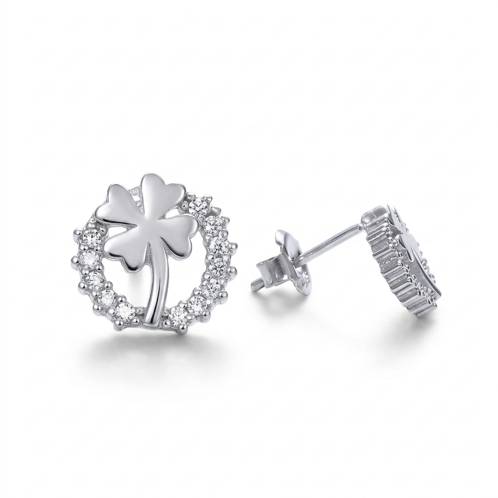 Diskretne i nežne cirkonske minđuše na šraf od srebra sa motivom deteline. Jednostavna lepota za svakodnevno nošenje.